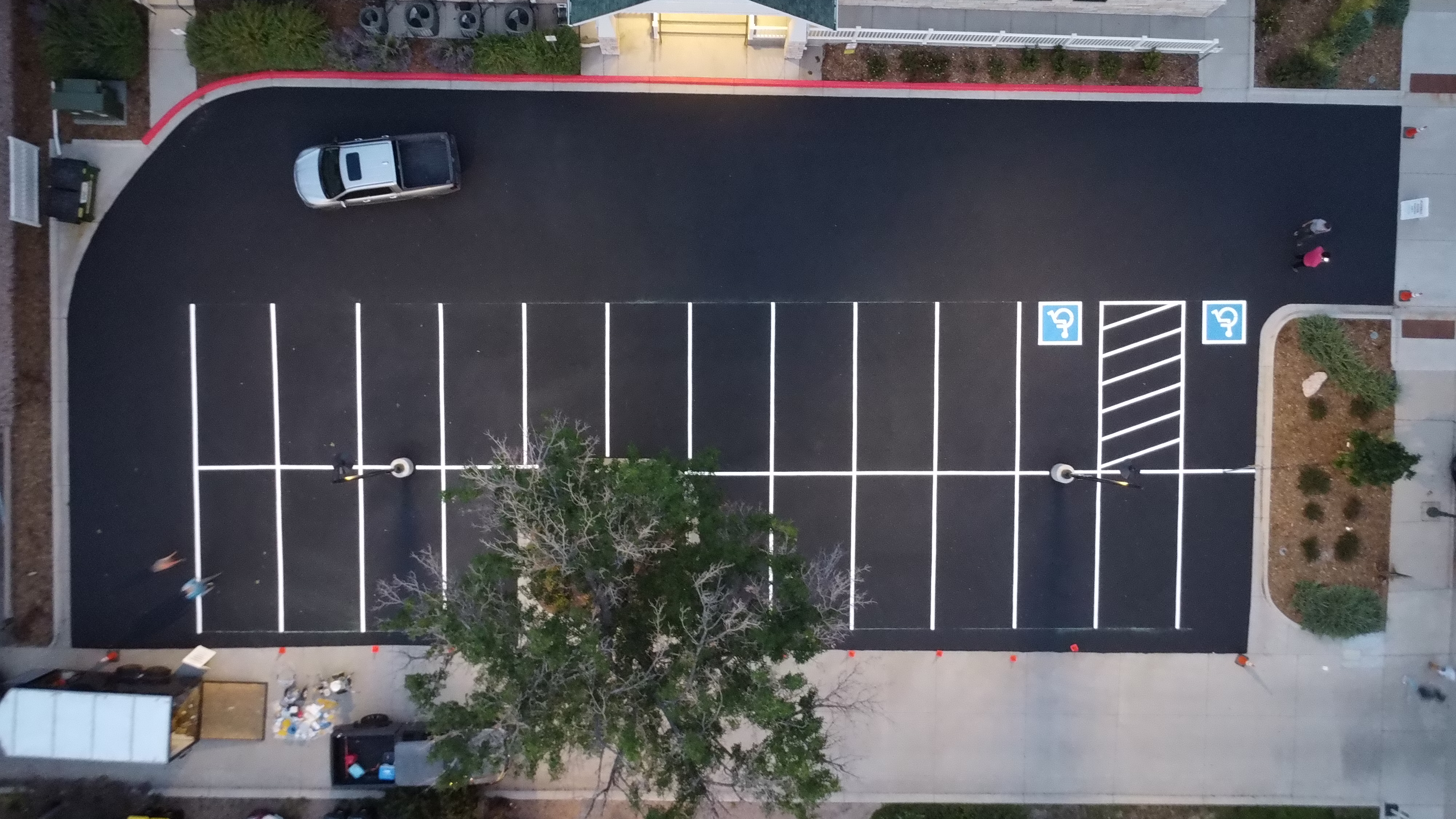 Yes. We ensure all striping, access aisles, and signage meet ADA requirements to keep your property compliant and avoid potential fines.
